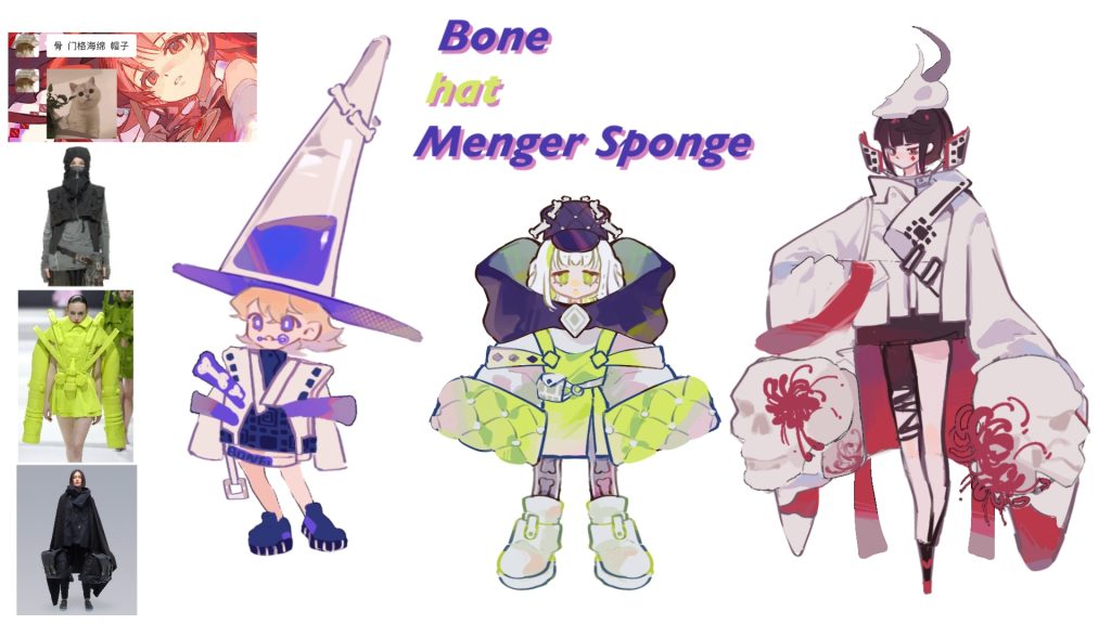 In my spare time, I will ask each other questions with my friends (each time give three unrelated words, and design characters around these three words). This time my friend gave me the title: Bones, Menger Sponge, Hats